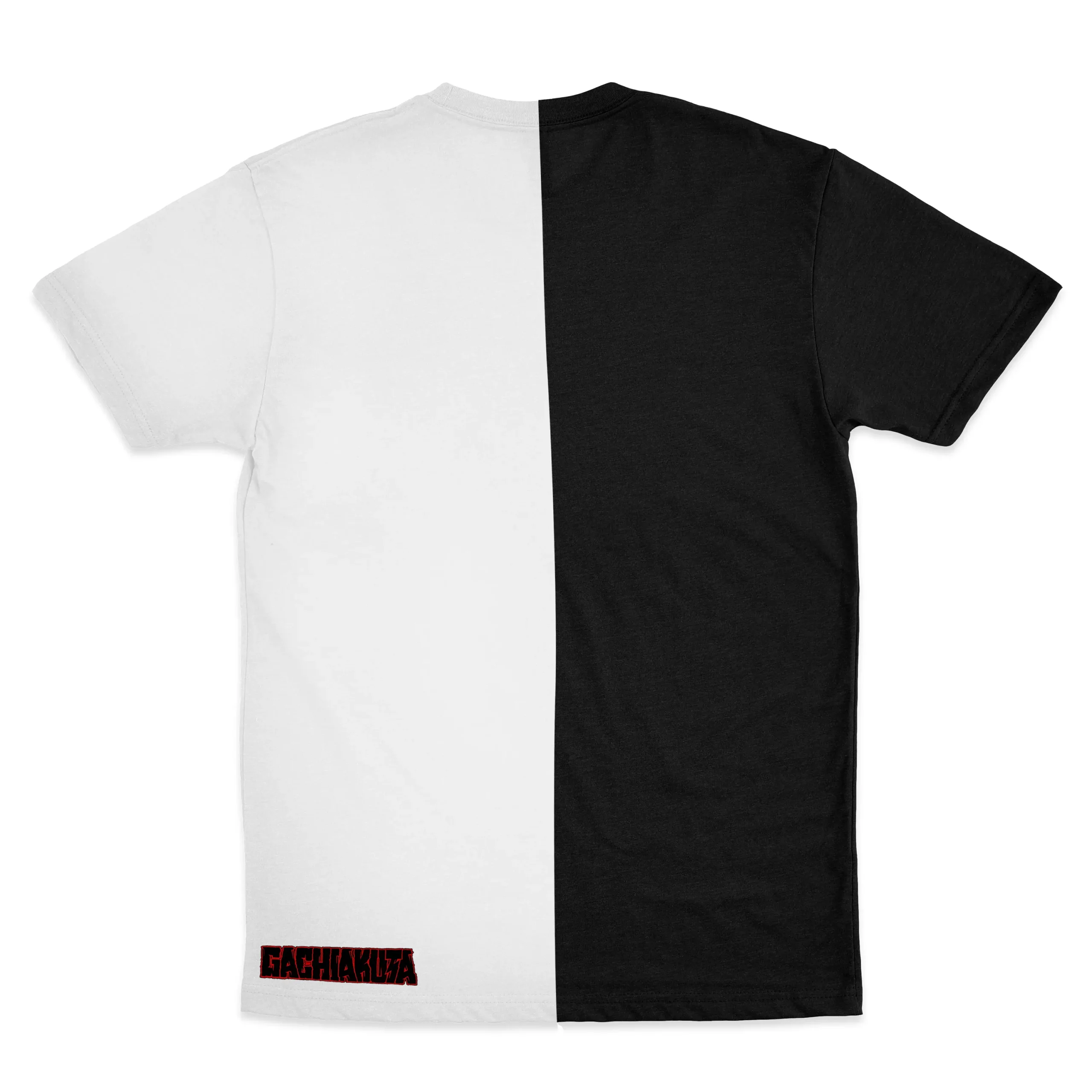 Stand out without saying a word. This striking split-color t-shirt blends bold red with deep black in a clean 50/50 vertical cut – perfect for those who live between chaos & control.